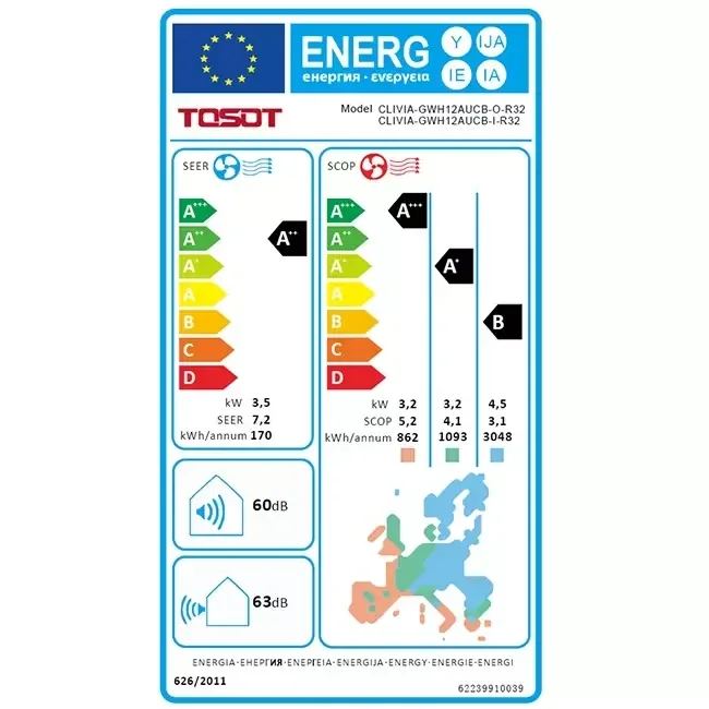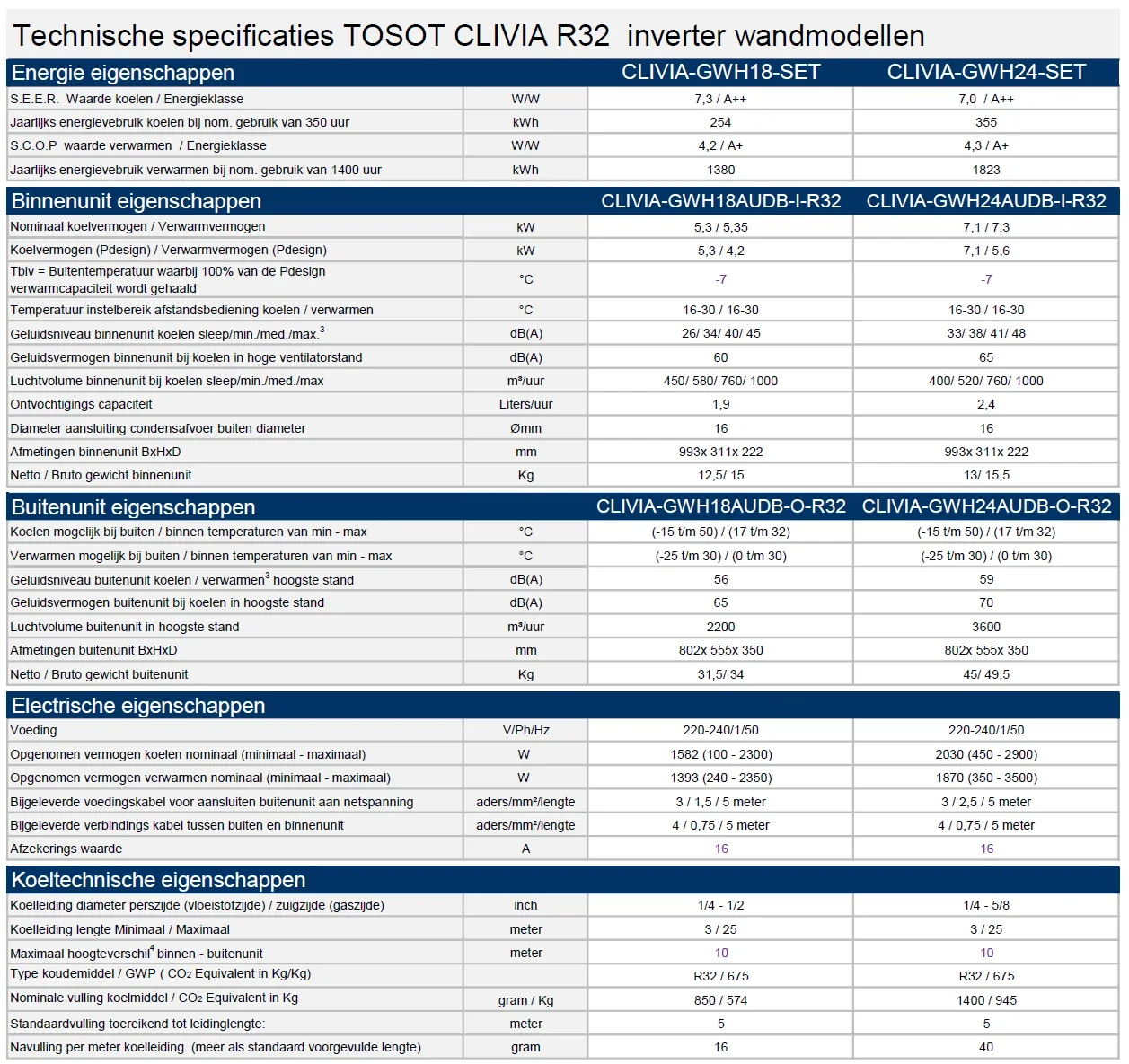 TOSOT CLIVIA 5,3kW R32 White Design inverter set by GREE (Wifi) ( tijdelijk niet leverbaar)